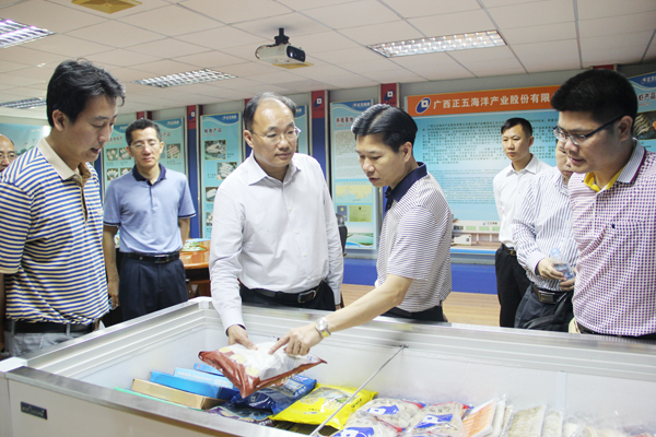 在正五海產(chǎn)公司,黃禮雄向曾子祥一行介紹了企業(yè)生產(chǎn)的主要產(chǎn)品,匯報了企業(yè)當前原料收購、市場銷售、經(jīng)營效益等情況。