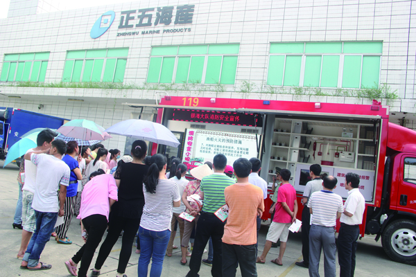 消防宣傳車一駛進(jìn)公司,就吸引了眾多員工的目光, 大家紛紛圍了上來。“在日常生活中要注意不能私拉亂接電線,天冷使用電熱器、火爐取暖時要及時清理周邊的可燃易燃物。”消防人員耐心地為群眾講解了家庭用火、用電安全注意事項、逃生自救口訣、家庭火災(zāi)案例分析及漁船火災(zāi)的預(yù)防措施等安全知識,簡單講解了火災(zāi)存在的危險性、火災(zāi)的燃燒特性和火災(zāi)發(fā)生時的逃生自救方法。