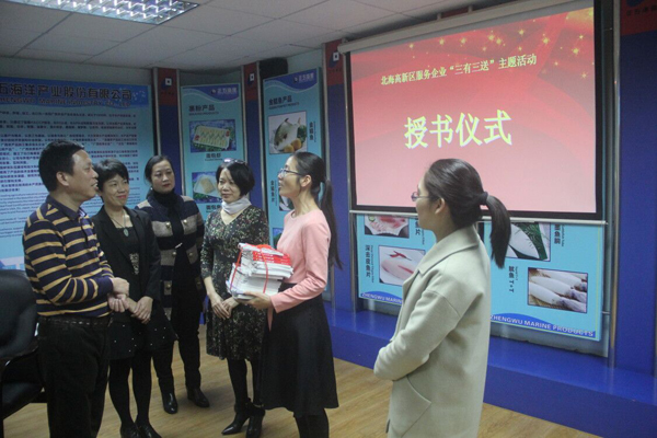 12月20日,高新區(qū)管委會(huì)黨工委委員、管委會(huì)副主任傅文偉等領(lǐng)導(dǎo)來到正五海產(chǎn)公司開展“三有三送”主題活動(dòng)。