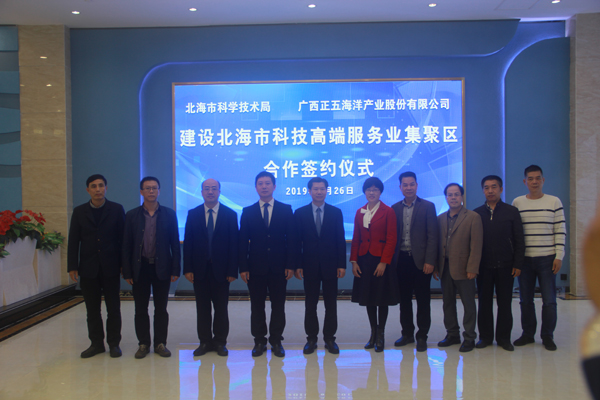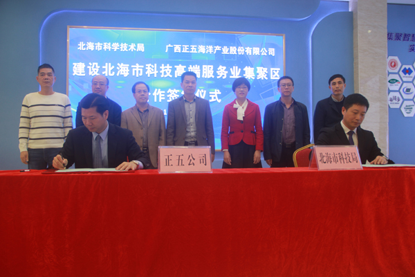 3月26日下午,北海市科學(xué)技術(shù)局與廣西正五海洋產(chǎn)業(yè)股份有限公司在正五北部灣海洋科技創(chuàng)新港一樓大廳簽訂《北海市科技高端服務(wù)業(yè)聚集區(qū)戰(zhàn)略合作協(xié)議》。參加簽約儀式的有市科技局領(lǐng)導(dǎo)班子成員,各科室負(fù)責(zé)人及北海市科技信息研究所干部職工、正五集團(tuán)董事長(zhǎng)黃禮雄、集團(tuán)副總裁榮培彥及正五公司各部門負(fù)責(zé)人等共計(jì)30余人。