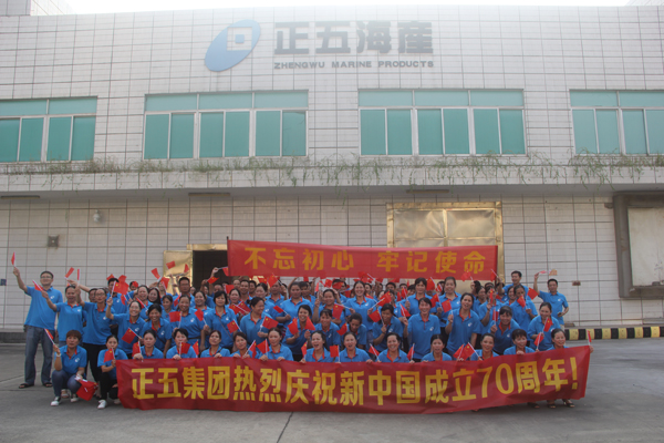 下午,正五集團組織員工在正五海產大廣場舉行慶祝新中國成立