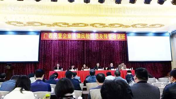 11月11日,廣西區(qū)高級人民法院、檢察院、公安廳、工商聯(lián)四部門在南寧聯(lián)合舉辦“廣西民營企業(yè)法律風險防范和預警培訓班”。正五集團公司總經(jīng)理助理袁海祺參加了本次培訓。