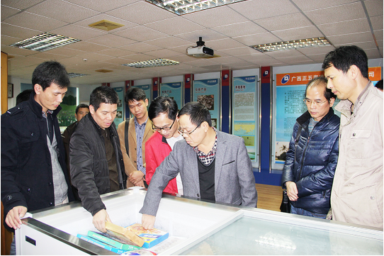 防城港市科技局副局長許炳杰率隊在北??疾炱陂g,于3月10日來到正五海產公司考察國家級高新技術企業建設的經驗和做法。北海市科技局副局長周國福等陪同。